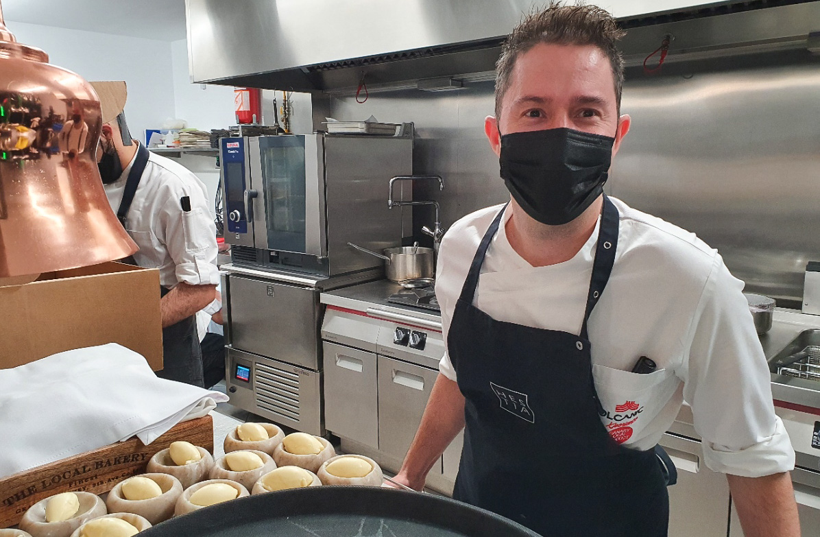 Formado en la opulencia de Salvador Gallego (durante el tiempo que el chef madrileño asesoró en Las Aguas del hotel Bahía del Duque, Tenerife) y, por si fuera poco, en el clasicismo canónico exigido por el ex Ministro Principal de Escocia, Alex Salmond (“¡no sabes la cantidad de filetes Wellington que tuve que hacer!”), del que fue cocinero en Edimburgo, Juan por fin se quitó el polvo de los zapatos y abrió el Hestia, en la capital de Gran Canaria, no muy lejos de la playa de Las Canteras. No fue casualidad el nombre de Hestia porque, además de ser aquella la diosa griega del hogar y de la lumbre, que sería lo obvio, también la deidad era famosa entre los helenos por su calma, su carácter pacífico y su empatía, virtudes todas ellas que, mutatis mutandis, ornan la cocina de Juan. Sí; Juan la juega bien desde el principio, que es el producto, respetándolo monacalmente y acariciándolo tan sólo con combinaciones de origen clasicista matizadas, eso sí, de modernidad. Con ello consigue la certidumbre sápida sin renunciar a la ligereza, la limpieza, la lírica. La suya es una cocina amable pero con puntos revoltosos, minimalista en las apariencias pero muy trabajada en los entresijos. O sea, mola.
